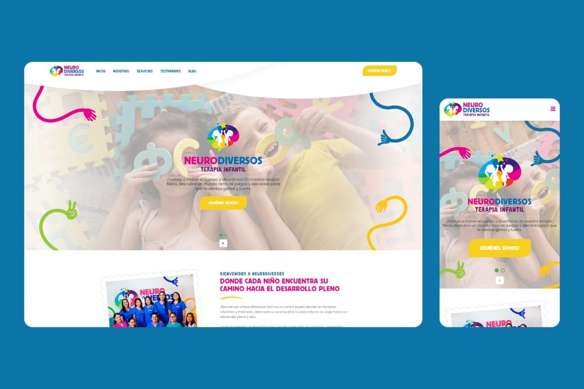 Neurodiversos necesitaba una página web que representara su enfoque profesional en terapias integrales para niños. El sitio debía ser visualmente atractivo, claro, y fácil de navegar, destacando sus servicios y especialidades.